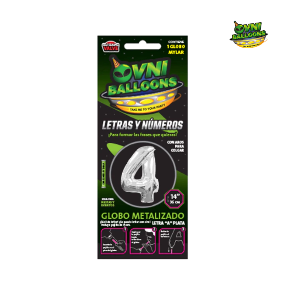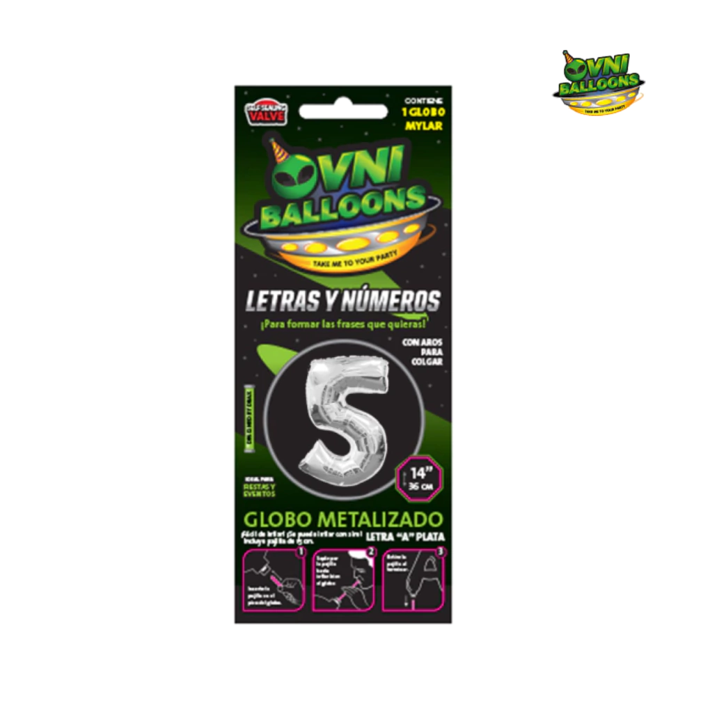 Globo Metalizado Número 0 al 9 - Holográfico Plata 14" - Ovni