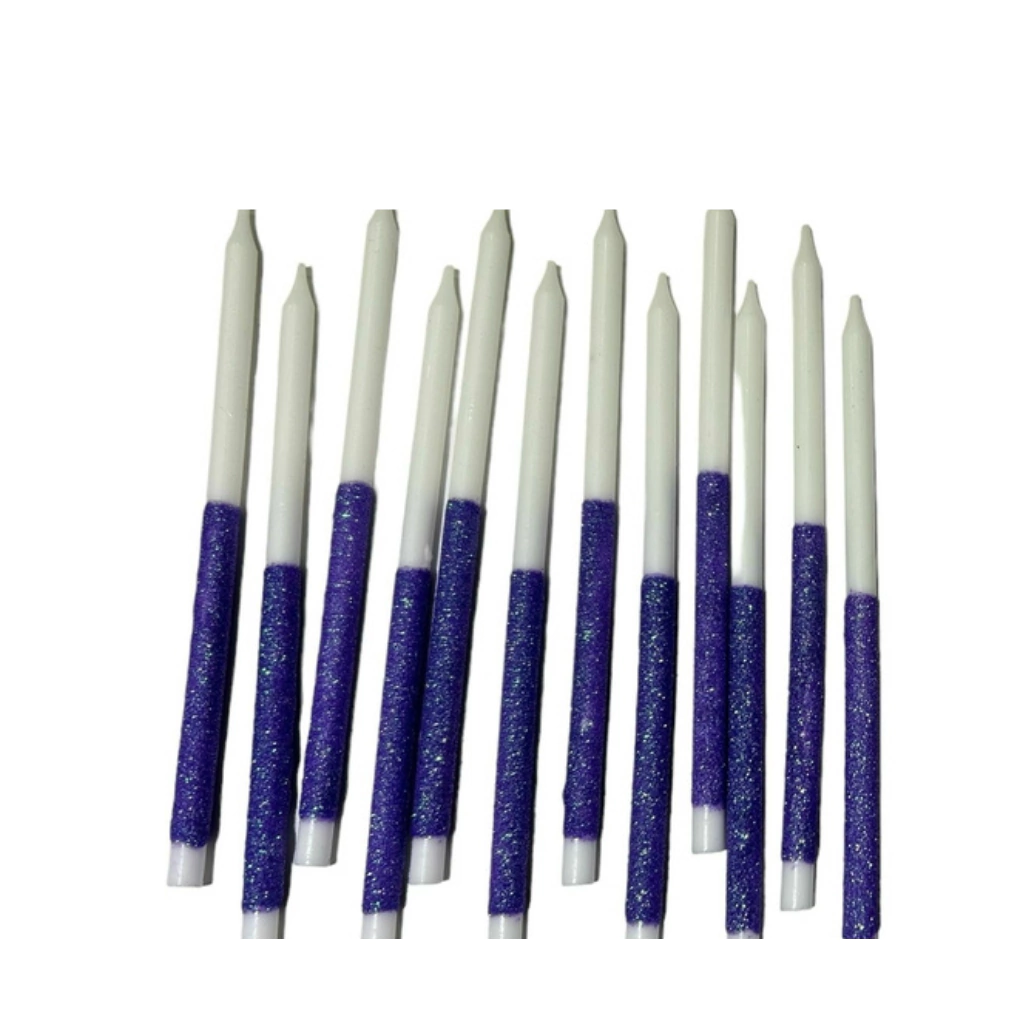 Pack x12 Velas Shine Party Color Violeta con portavela