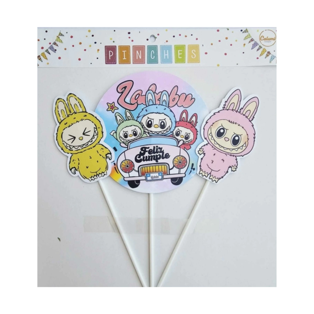 Adorno Para Torta - Feliz Cumpleaños - LABUBU x 3 Unidades