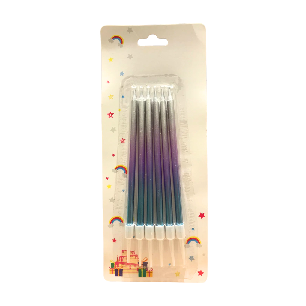 BLISTER VELAS FINITAS DEGRADE PLATA/CELESTE 13cm x 6u