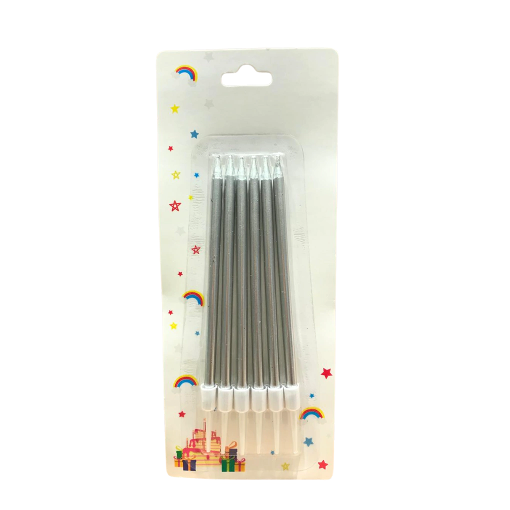 BLISTER VELAS FINITAS DEGRADE PLATEADAS 13cm x 6u