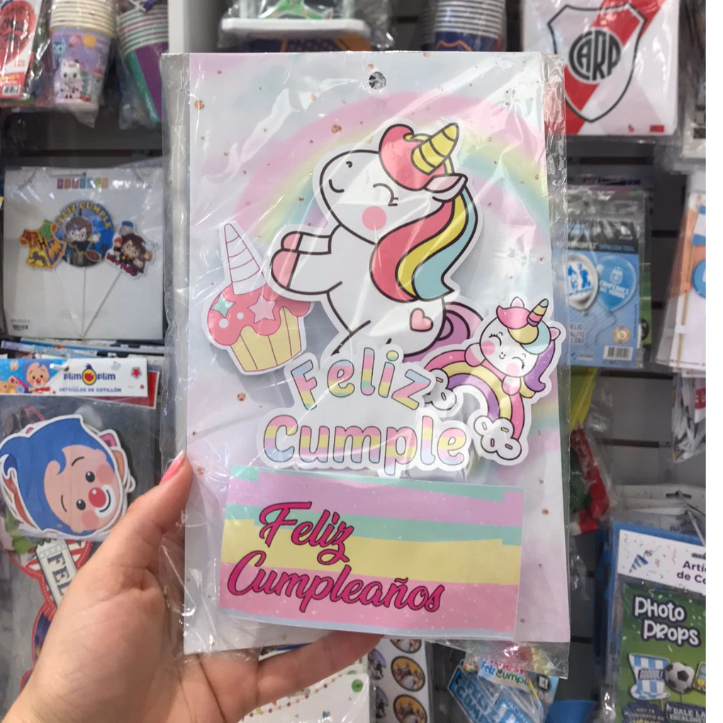 Set Pinche Feliz Cumpleaños Unircornio x 4 unidades