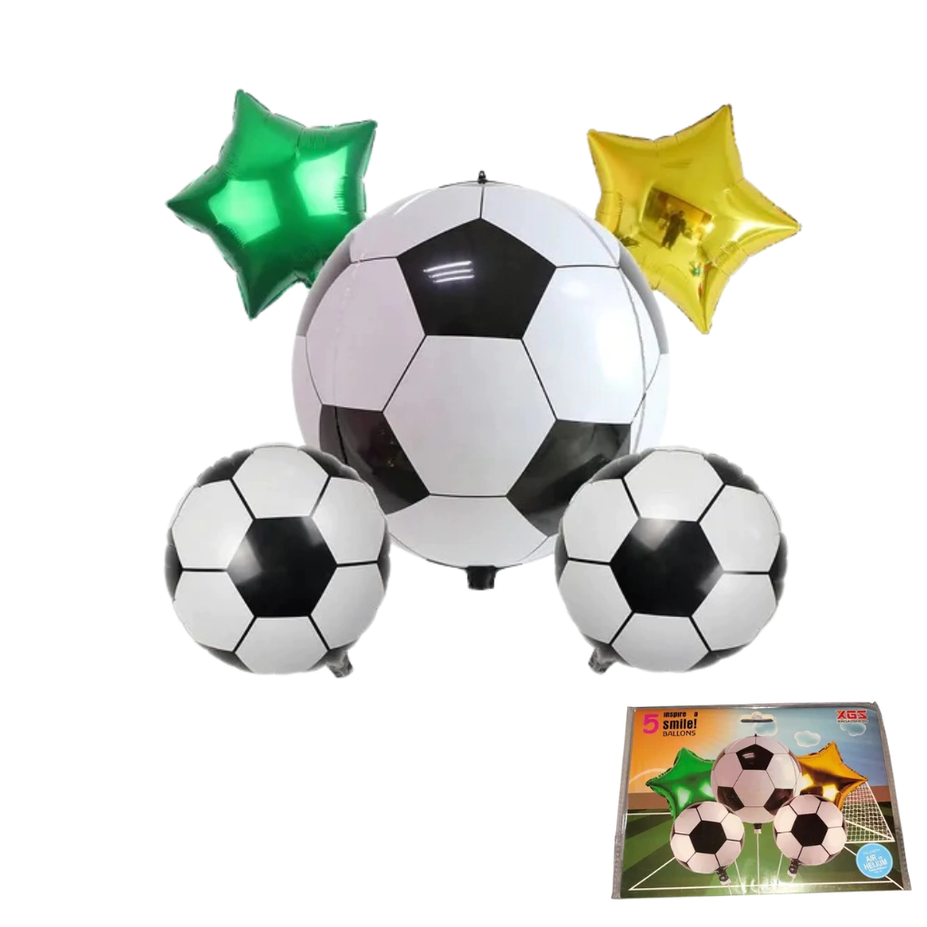 Set x 5 Globos Metalizados Futbol - Pelotas y Estrellas