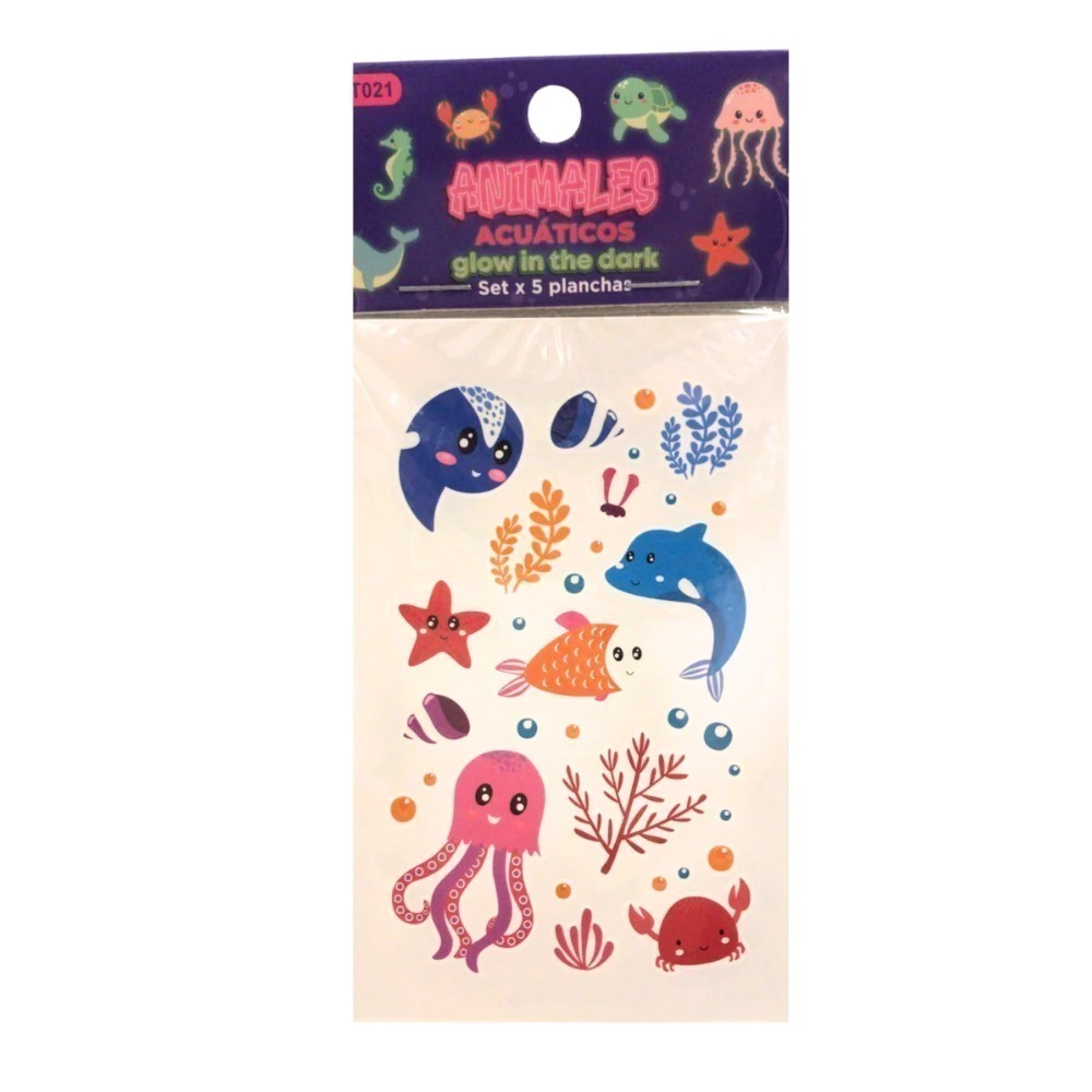 Tatuajes Animales Acuaticos (brilla en la oscuridad) - Paquete x 5